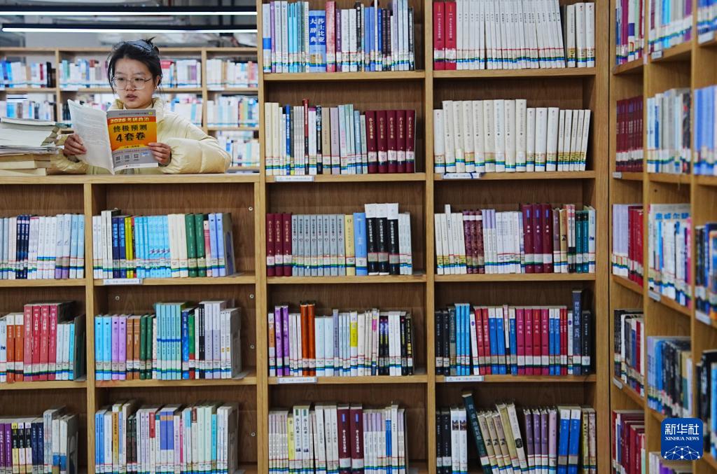 12月18日,湖南省衡阳市南华大学2026年度考研的同学在学校图书馆内看书复习。