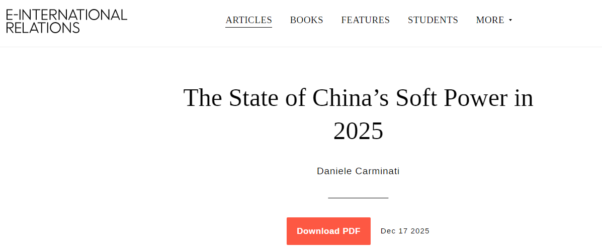 国际关系在线网站(E-International Relations)文章《中国2025年软实力概论》分析称,这些文化IP持续让中国从所谓“uncool”转向“new cool”,这种转变尤其体现在发展中国家和年轻群体中。