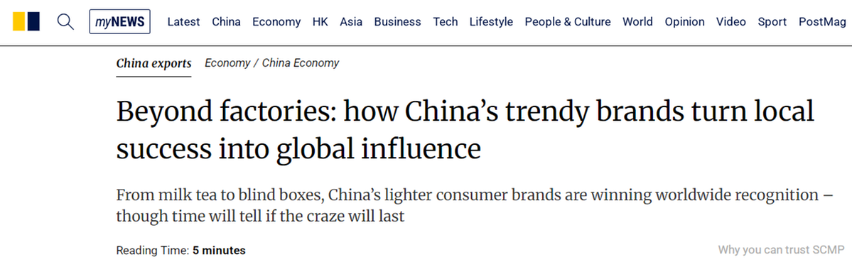 此外,中国消费品牌全球化也进一步放大了中国软实力。香港《南华早报》报道,中国潮流品牌凭借本土竞争锻造的供应链、数字营销能力,正加速海外扩张。比如,多家奶茶品牌已在英国、美国、日本等地开设超过300家门店,走进海外以咖啡为主的饮品市场。
