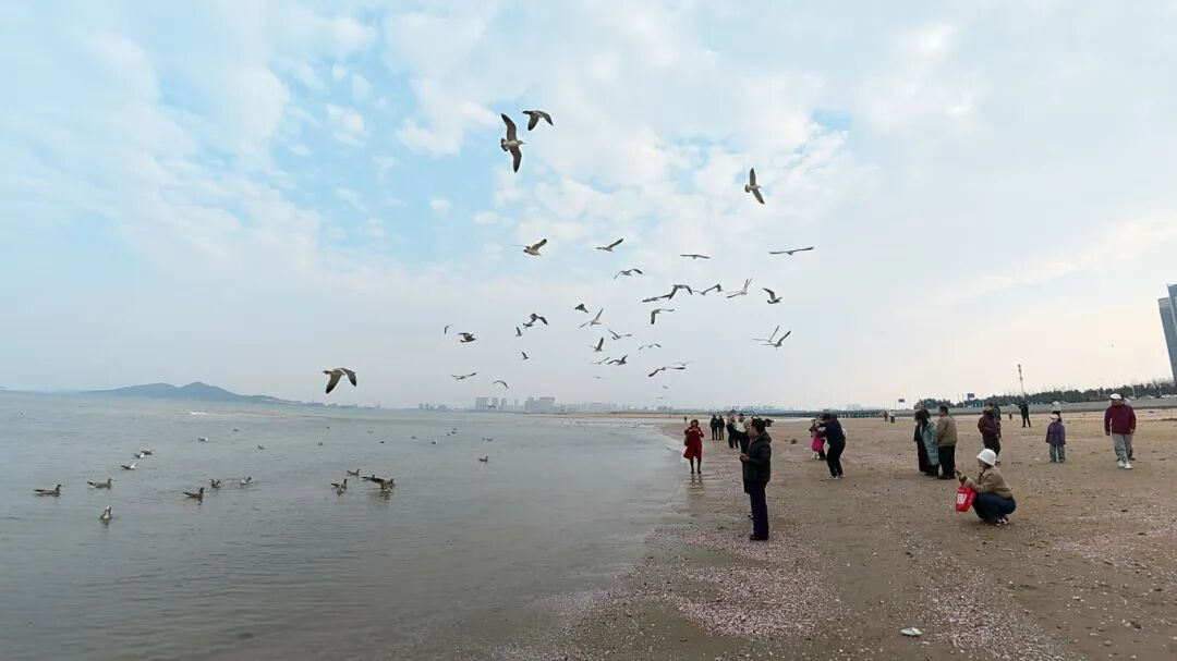 “从抖音上刷到这里的海鸥多,不怕人,风景还好,我一大早就开车从福山区赶过来了!”75岁的摄影爱好者于大叔,架着相机专注地捕捉海鸥展翅的瞬间,脸上满是笑意。来自河南周口的孙女士,特意带着父母远道而来,“早就听说烟台的海很美,没想到冬天还能看到这么多海鸥,真是不虚此行!”