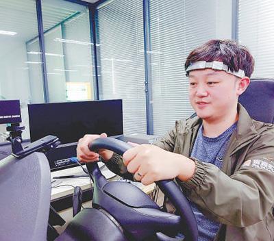 广州琶洲实验室,技术人员正在进行脑机AI疲劳监测实验。王维宣摄