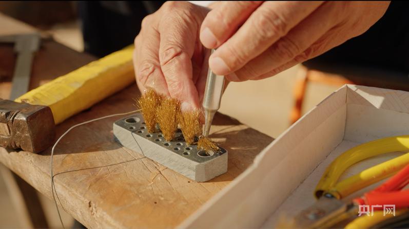 老一辈源潭人纯手工制刷(央广网记者 刘畅司晨 摄)