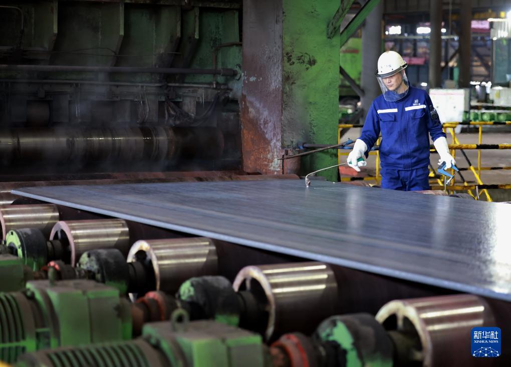 12月26日,工人在唐山海港经济开发区一家船舶用钢企业的生产线上工作。