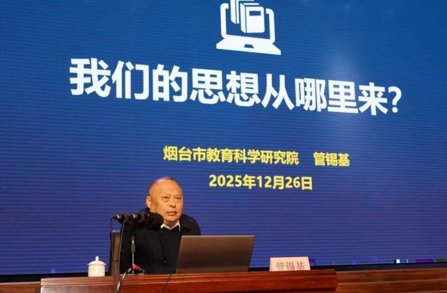 最后,烟台市教育科学研究院管锡基院长做了专题报告《我们的思想从哪里来》,构筑起本届论坛的理论高地。报告从哲学高度系统阐释了教育思想的起源、发展与升华路径。