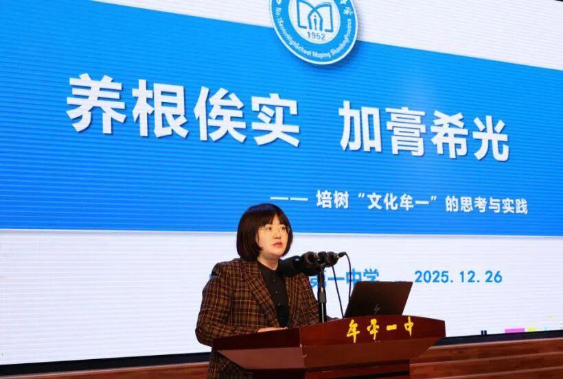 在26日的主题分享环节,多位校长代表立足办学实际,分享了特色鲜明的教育理念与实践成果。牟平一中党委书记鞠静以“养根俟实 加膏希光”为核心,系统阐释学校文化建设的逻辑与实践。