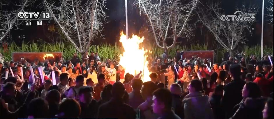 随着绚烂的焰火腾空而起,当晚的活动也迎来了最高潮。演员们走下舞台,和上千名观众一起围绕篝火舞蹈狂欢,满怀憧憬迎接新年。