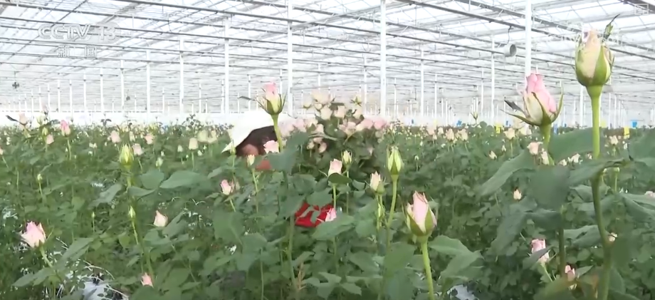 在这里,国内顶尖水平的玻璃温室、电脑系统精准调光控温,智能化种植的“硬核”加持下,不仅保障了鲜切花稳定量产,当地还成功培育一系列新品种,丰富节日鲜花市场供应。