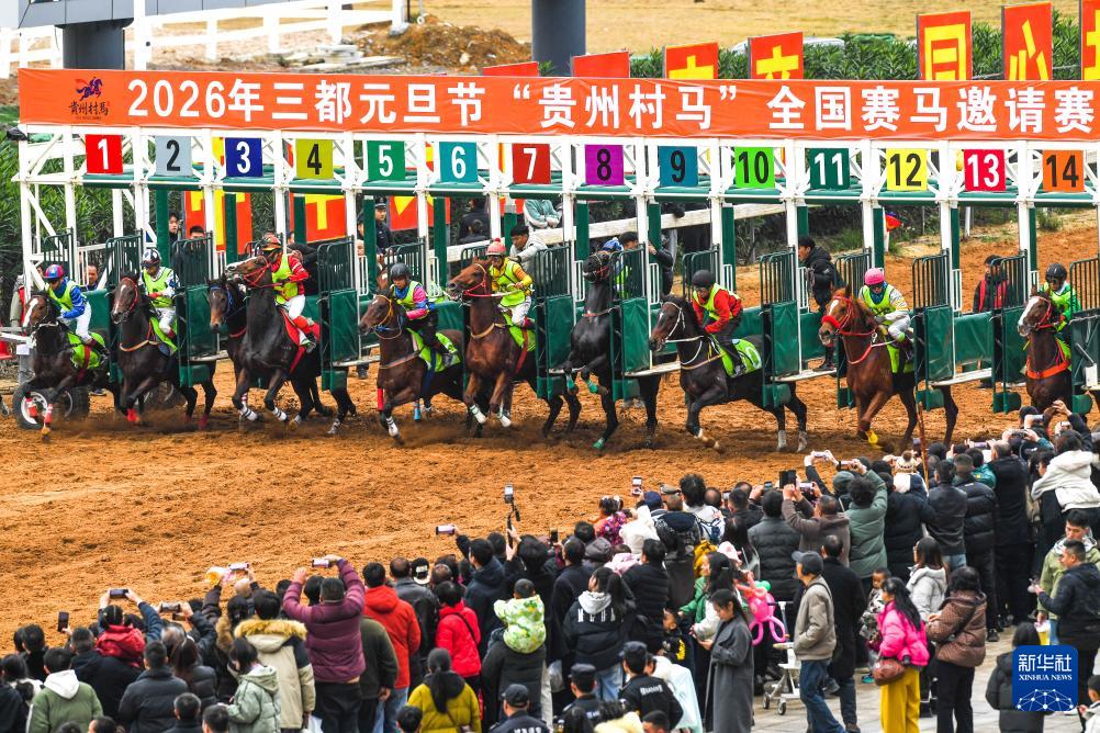 当日,2026年“贵州村马”全国赛马邀请赛在三都水族自治县举行,来自全国的多支代表队参加比赛。比赛期间举办马术表演、民俗展演等丰富多彩的活动,喜迎元旦节的到来。