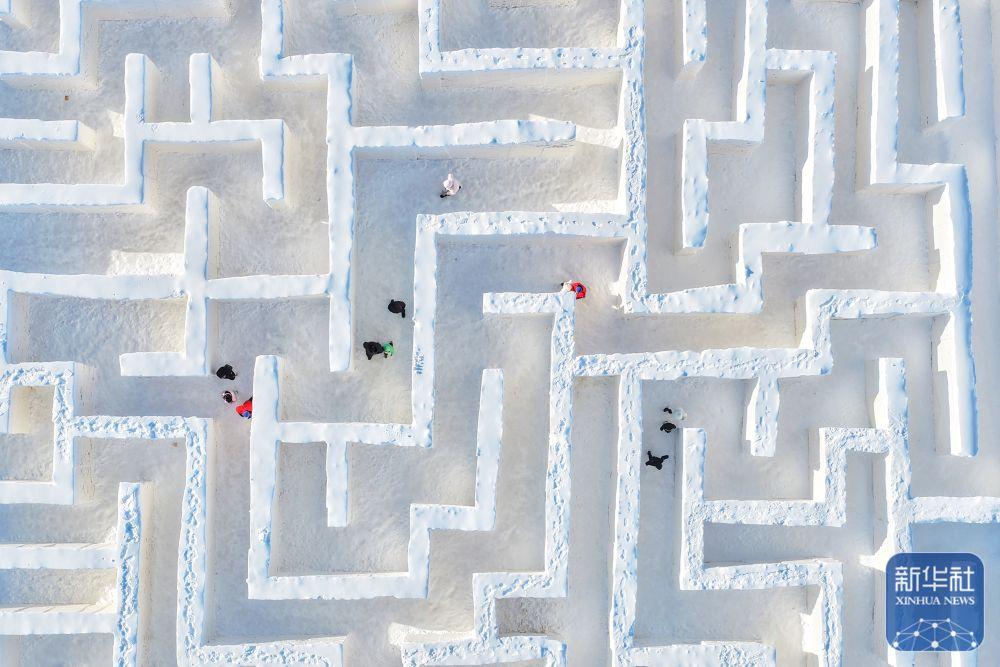 ↑ 1月2日,人们在哈尔滨冰雪大世界园区拍照。新华社记者 张涛 摄