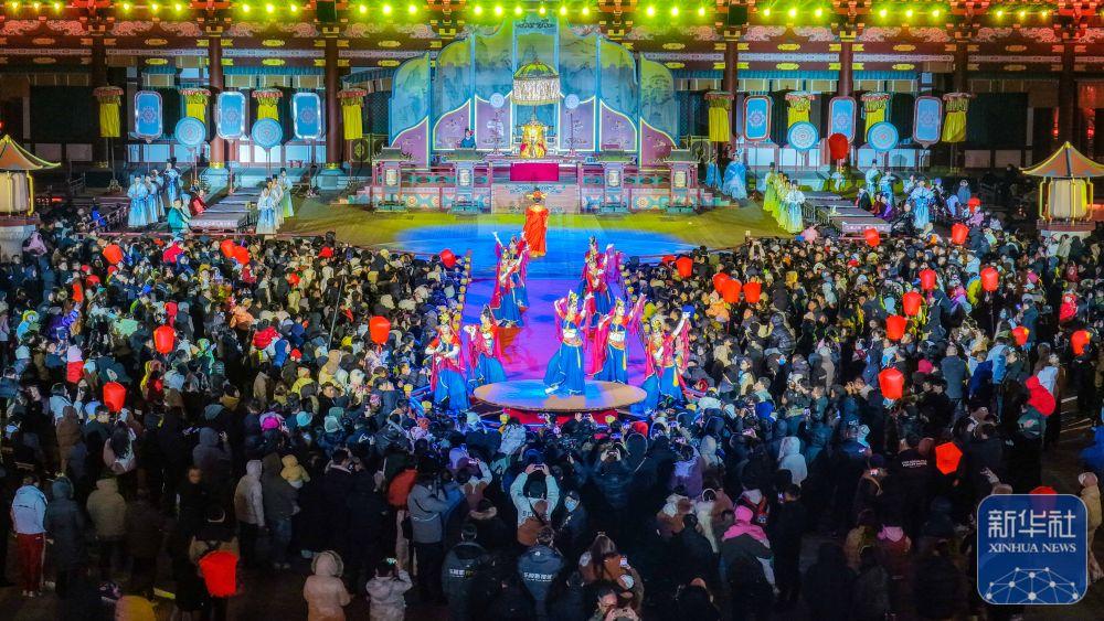 ↑ 1月1日,游客在河南省洛阳市隋唐洛阳城国家遗址公园内欣赏演出。新华社发(黄政伟摄)