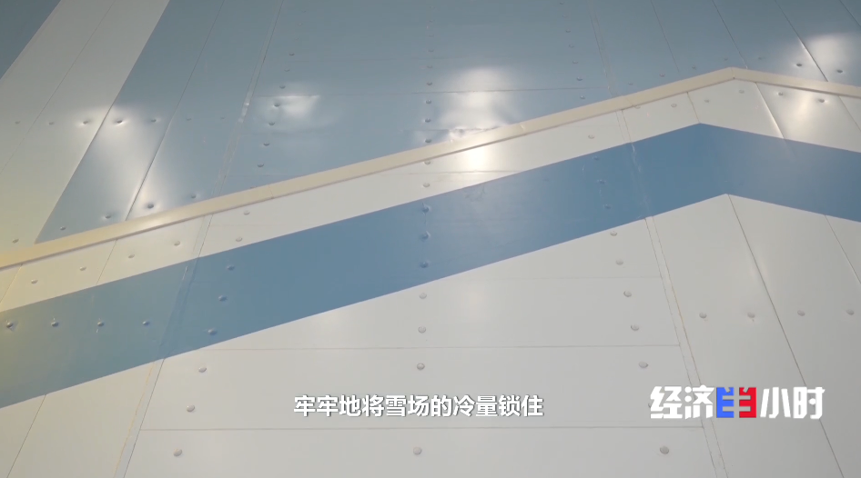 工作人员介绍,雪场四周和楼顶分布着1万多块冷库板,牢牢将雪场冷量锁住,隔绝内外之间温差。