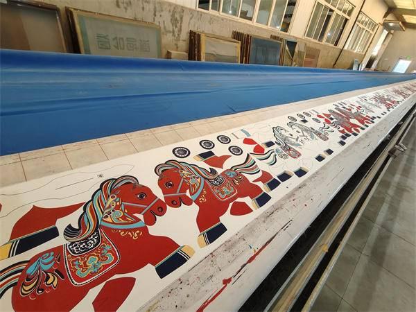 在工艺设计上,作品践行“传统为根、现代为魂”的创作理念,坚守手工丝网印花的非遗精髓,通过丝网制版、油墨刮印等传统工序,将唐代宝相花、卷草纹、缠枝莲等经典纹样精准复刻于布艺之上,清晰灵动,色彩饱满,兼具历史厚重感与艺术美感,让千年纹样焕发当代活力。造型设计兼顾雄浑神韵与亲和质感,圆润流畅的线条搭配柔软布艺材质,既保留唐马的雍容气度,又呈现出憨态可掬的视觉效果,适配节庆陈设、文化传播、礼尚往来等多元场景。