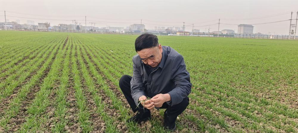 在齐齐整整的麦苗间缓步走了一阵,徐淙祥蹲下身,拔出一小撮苗,细细扒拉,黝黑的脸上露出笑容:“都是3片叶、5条根,处于分蘖前期了,是一类壮苗。”