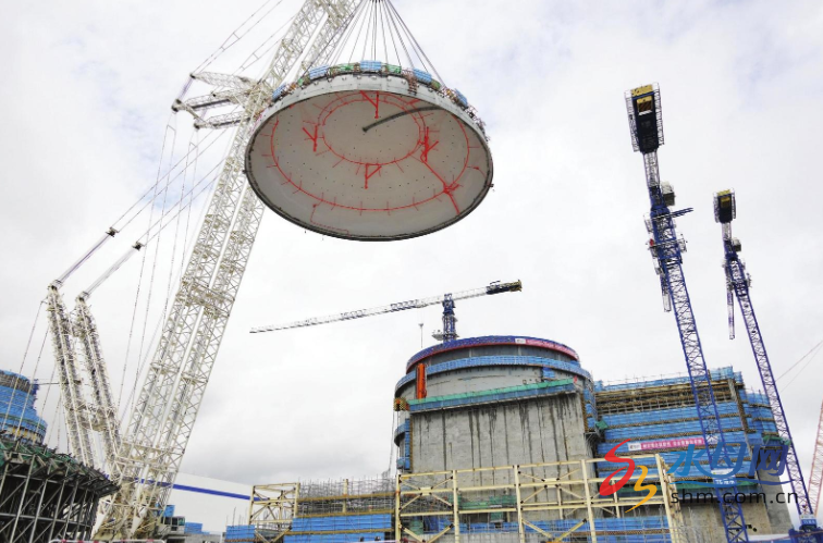 海阳核电4号机组核岛安全壳顶封头吊装(资料片)。YMG全媒体记者 唐克 摄