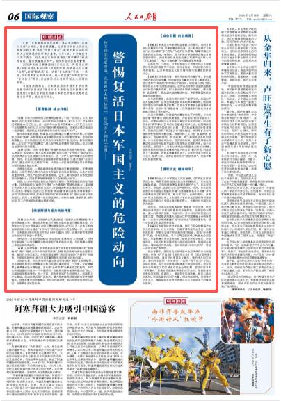 在此背景下,国际社会应共同坚守战后秩序历史与法理依据,依据《开罗宣言》《波茨坦公告》及《联合国宪章》等国际法文件,重申反对军国主义复活、维护持久和平立场,牵制日本破坏“和平宪法”、突破“专守防卫”行动。在地区层面,各方应坚持推动构建基于新型安全观,符合亚洲多元协商主义的区域多边安全合作机制,坚决反对日本“再军事化”及美日同盟强化带来的泛安全化、军事阵营对抗等负面影响。在国际上,推动和平反战教育,普及二战历史真相,发动各国民间和平力量,相互响应支持,共同维护历史正义,增强国际社会对历史修正主义及军国主义的警惕与批判。(本报记者 贾平凡)