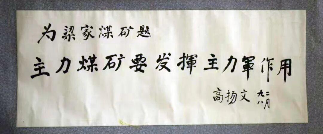 在山东能源鲁西矿业梁家煤矿(原龙口矿业集团梁家煤矿)档案室,保存着我归档的原国家煤炭工业部部长高扬文的两幅题词。一幅四尺的横幅挂轴,已经装裱;另一幅是写在宣纸册页上的。苍劲有力的字体,彰显了老部长的书法风格。