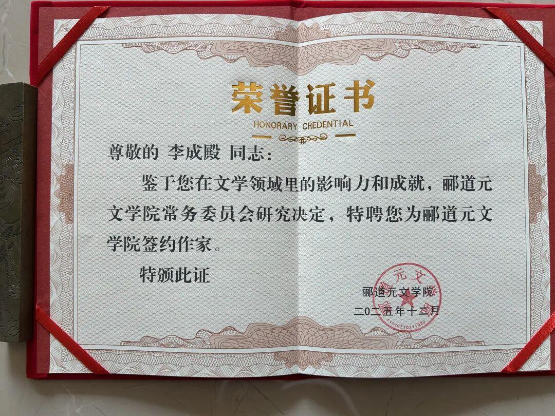 12月30日,我又收到郦道元文学院“签约作家”的聘书。这份聘书对我来说意义非凡,它是对我过去创作的肯定,更是对我未来创作的鼓励和期待。