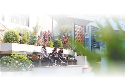 重庆市沙坪坝区沙坪坝街道一心村社区,居民在更新改造后的街巷休息。