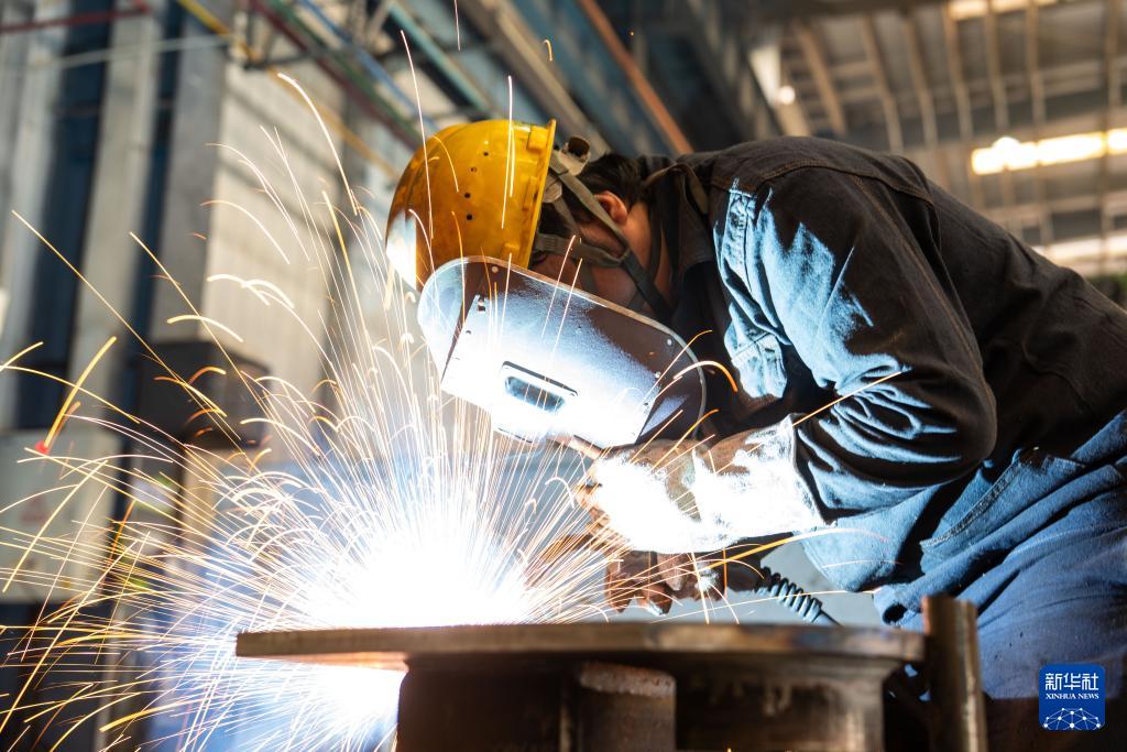 1月14日,在位于常德高新区的中联重科建筑起重机械有限责任公司,工人在生产塔式起重机零件。
