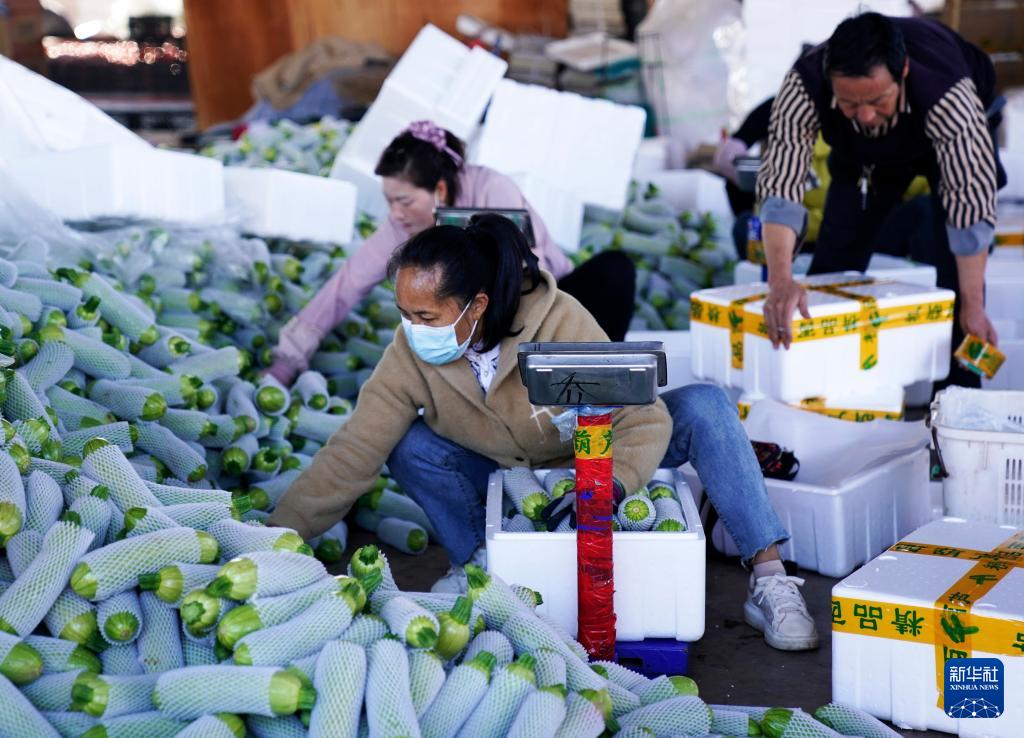 1月14日,在云南省元谋县果蔬综合批发市场,村民在分拣蔬菜。