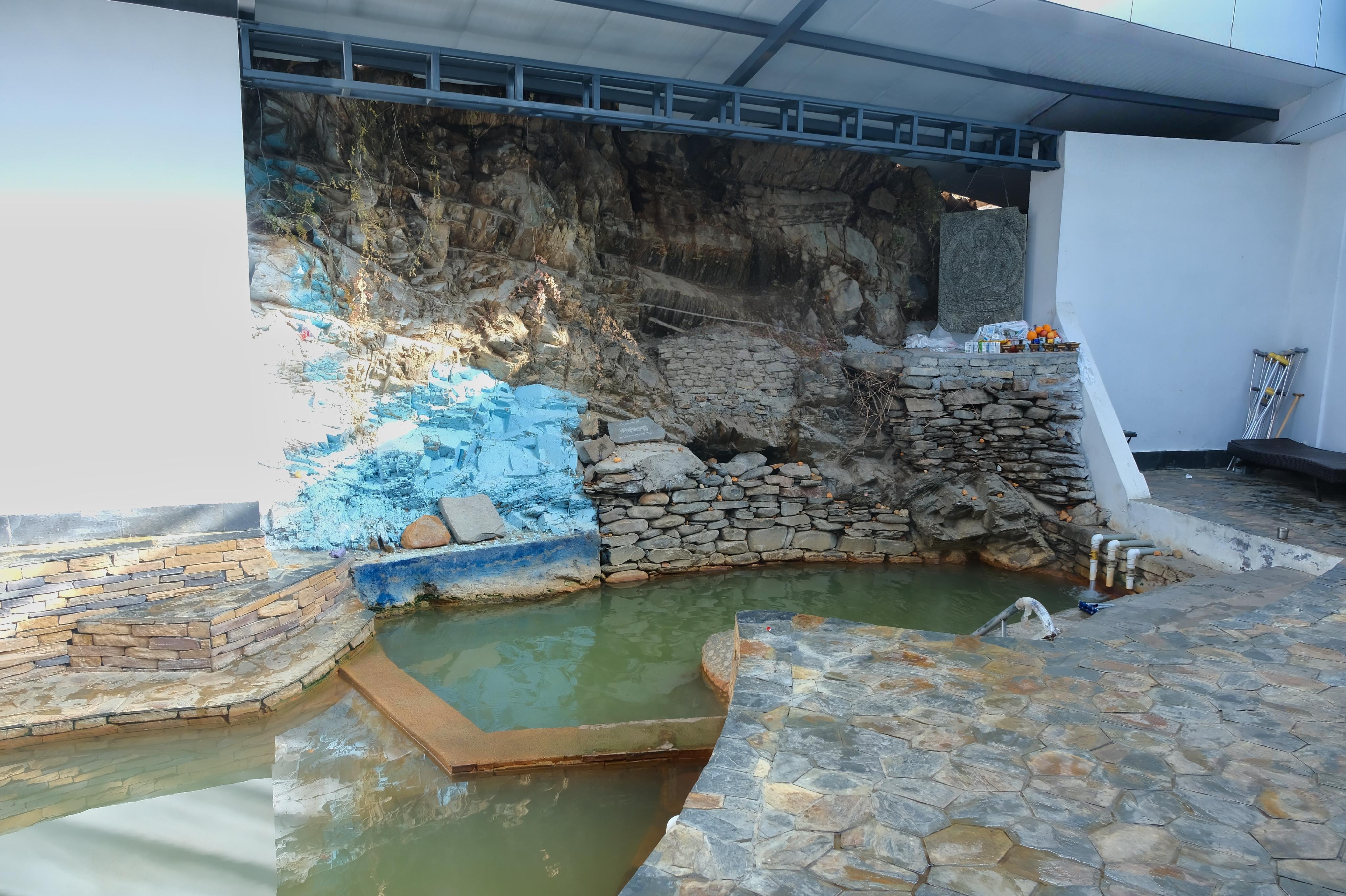 念朗温泉公共泡池在设计时将天然山体作为建设装饰的一部分,充满野趣
