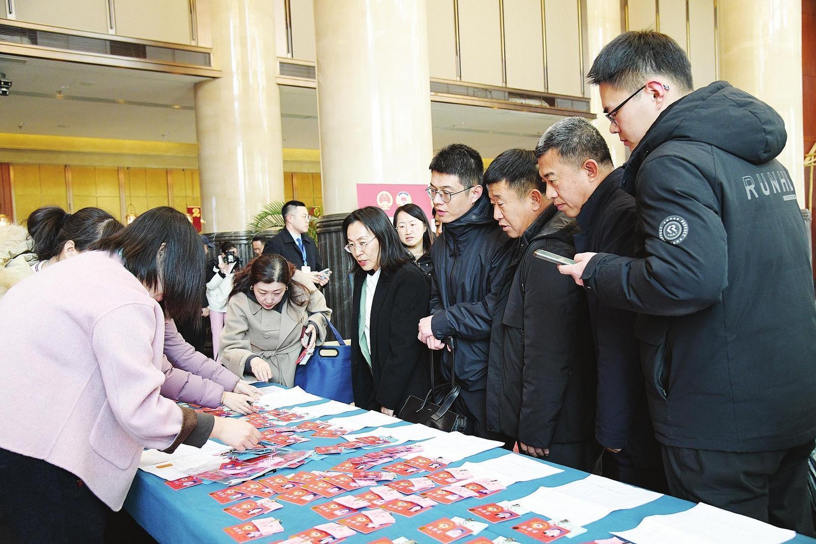 报到现场简约庄重,工作人员提前到位、细致引导,委员们仅需完成签到、领取证件及会议资料等环节,便可快速办结全部手续,全程高效顺畅,尽显务实高效的会风。