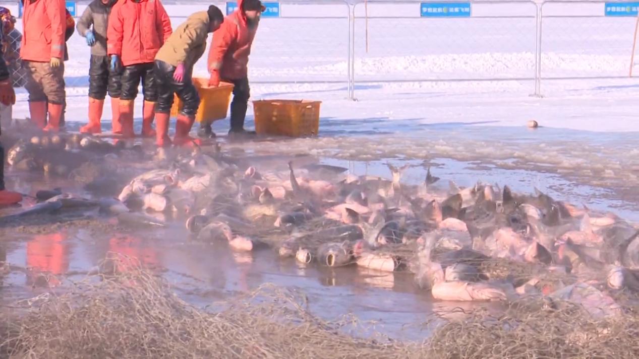 “出鱼啦!”随着一声吆喝,沈阳法库县财湖冬捕迎来今年第一网出鱼。古法凿冰、拉网起鱼的传统冬捕场景再现,千米大网被渔工合力拽出冰面,鲜活的花鲢、鲤鱼腾跃而出,引得围观的市民游客阵阵欢呼,近距离感受辽沈大地独具特色的传统渔猎文化魅力。
