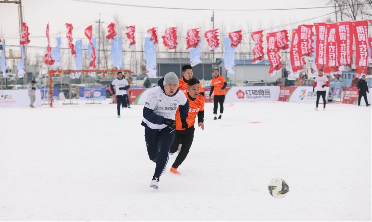 图为沈阳市沈北新区稻梦小镇雪地足球“村超”联赛现场