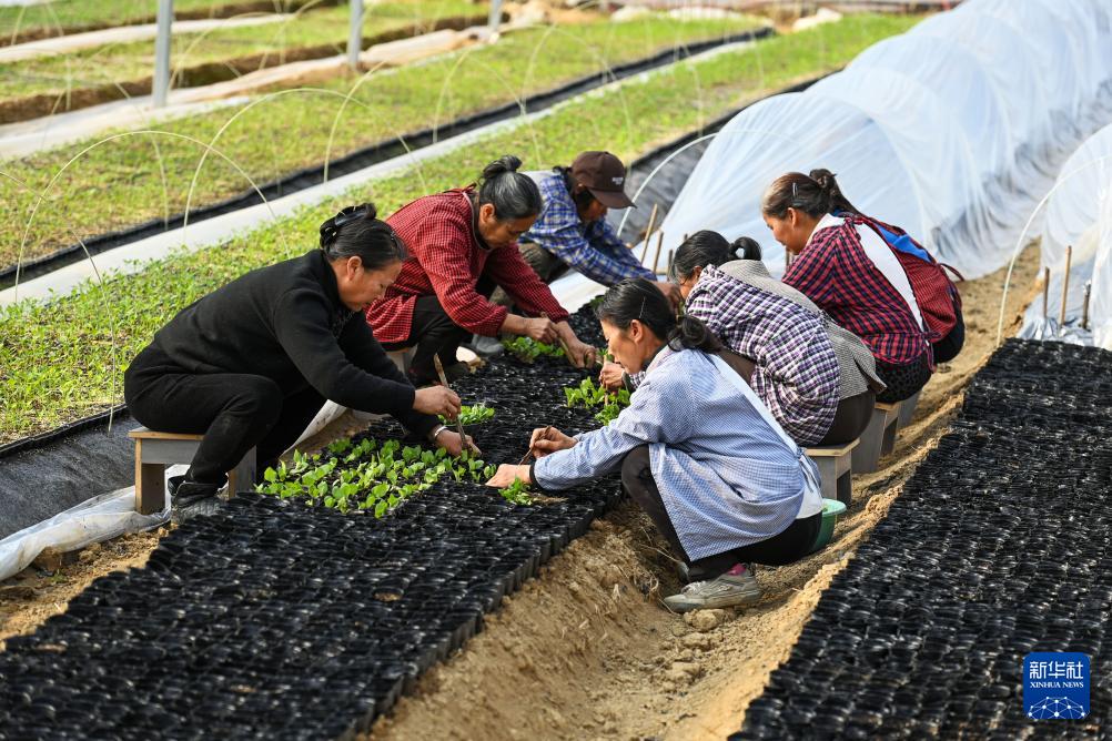 眼下正值菜苗育苗时节,在江西省宜春市袁州区飞剑潭乡陈源村的蔬菜种植基地内,村民们正抢抓农时培育和移栽辣椒、茄子、丝瓜、南瓜、苦瓜等蔬菜幼苗,为即将到来的春耕播种做准备。