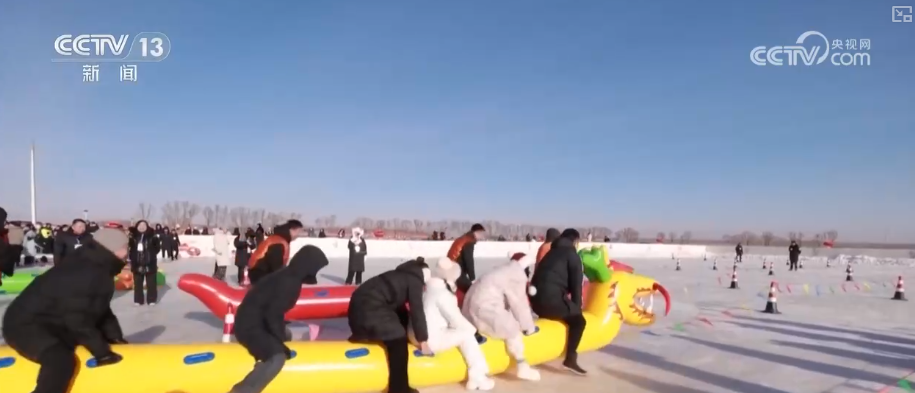在兴安盟,当地以“冰雪赛事+渔猎市集+民俗展演”为抓手,游客们不仅能观看文艺展演,体验冰上龙舟、冰车竞速、铁锅撞大鹅等趣味十足的活动,还能品鉴选购地道新鲜的江鱼。