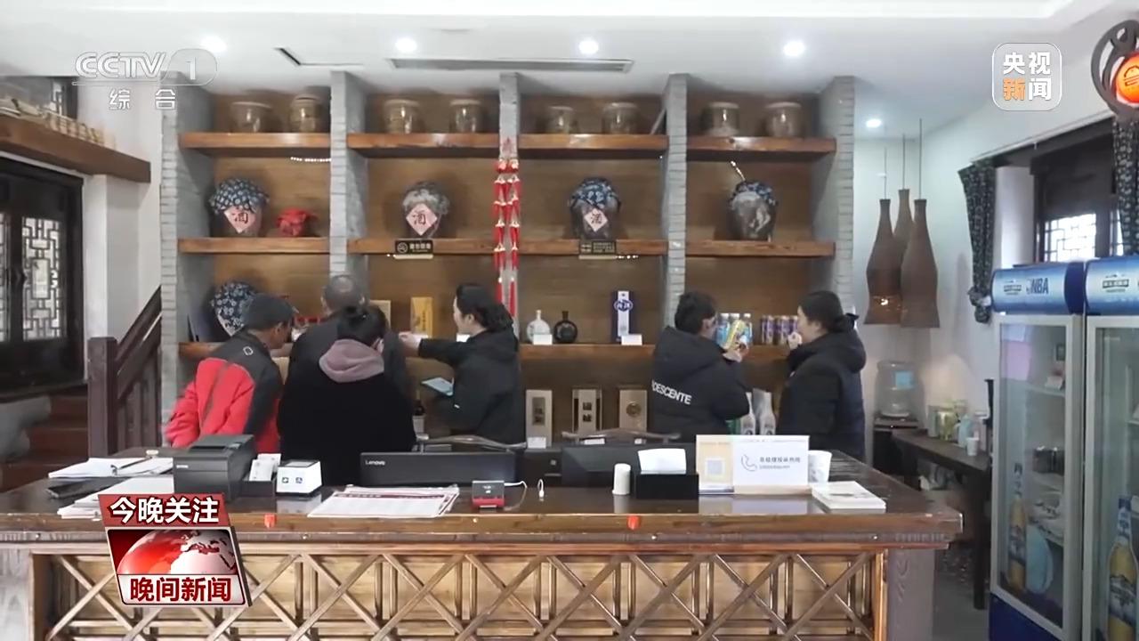 走进徐州窑湾古镇景区,非遗街区人气高涨,苏绣扇、文房四宝等店铺客流不断。