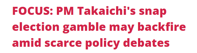 日本共同社英文网的报道援引政治分析师的话称,高市担心,一旦国会开始辩论,其支持率会下降,尤其是考虑到反对党预计将会就一些长期存在的丑闻向政府施压。