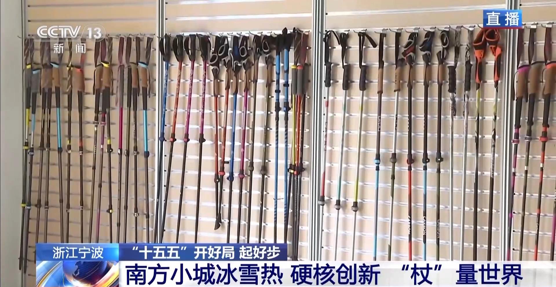 记者来到浙江宁波宁海县的一处生产车间内。从这里走出去的运动器材,有这几个特征:雪场常客、强力支撑、保持平衡。猜到是什么了吗?别着急,给大家看一个道具。
