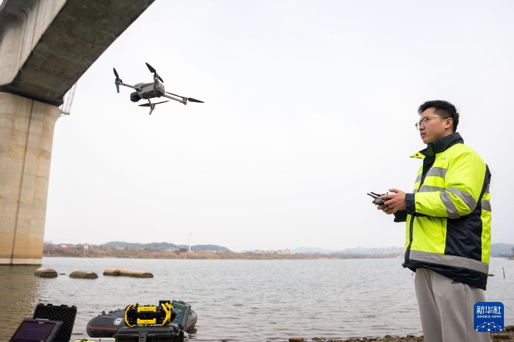 2026年春运即将启动,为做好铁路运输保障工作,中国铁路广州局长沙高铁工务段工作人员运用无人测量船、水下机器人、无人机等新型设备,对铁路桥梁、桥墩、河道等进行检测,守护列车运行安全。