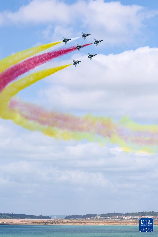 1月30日上午,中国空军八一飞行表演队在新加坡樟宜机场海面上空展开空中特技动作飞行。