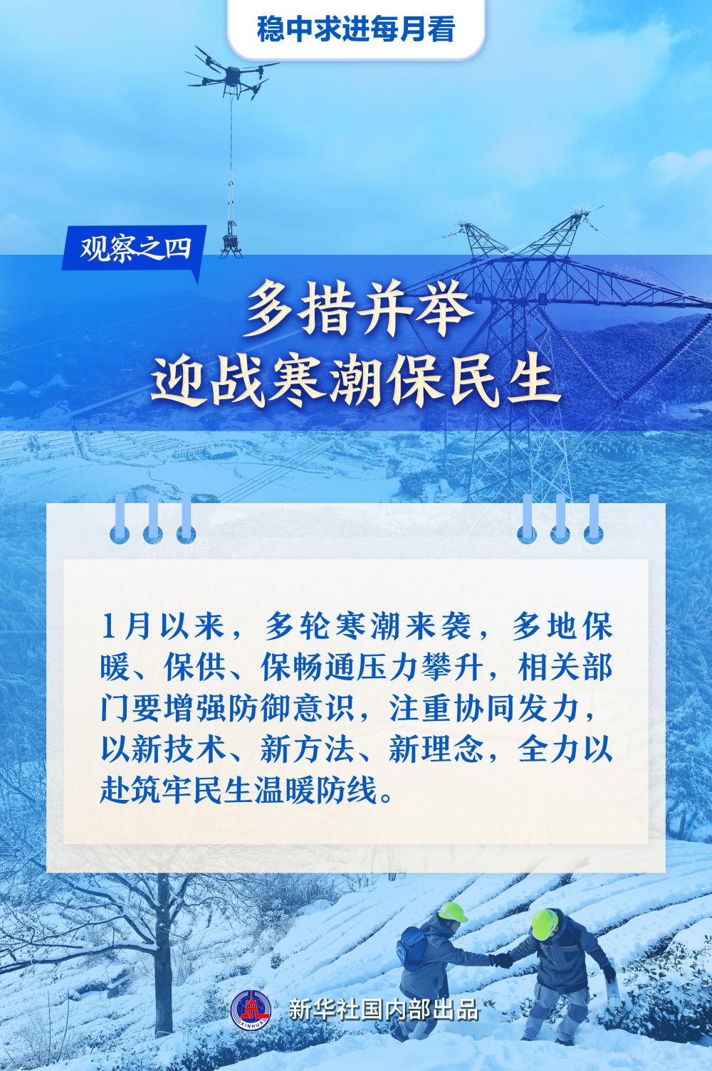 地方两会陆续召开,布局全年发展重点;惠民利企新规相继落地,政策效应不断显现;冰雪经济、年节经济冬日接力,为消费增添新动能;新技术、新方法筑牢温暖防线,迎战寒潮……1月以来,我国经济社会发展亮点多、新意足,在保持稳中有进态势下,全国各地奋楫开局,经济社会发展信心和动力不断增强。