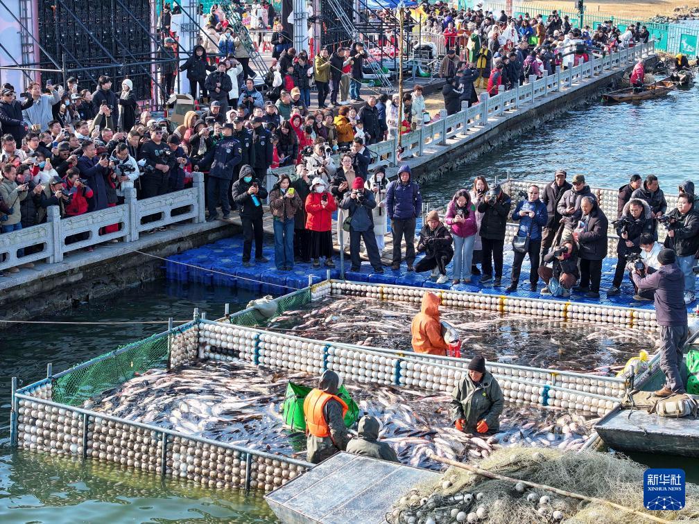 1月31日,2026溱湖湾冬捕活动在江苏省泰州市姜堰区溱湖湾举办,渔民们在溱湖水域开展冬捕作业,湖区水域呈现出一派人欢鱼跃的丰收景象。