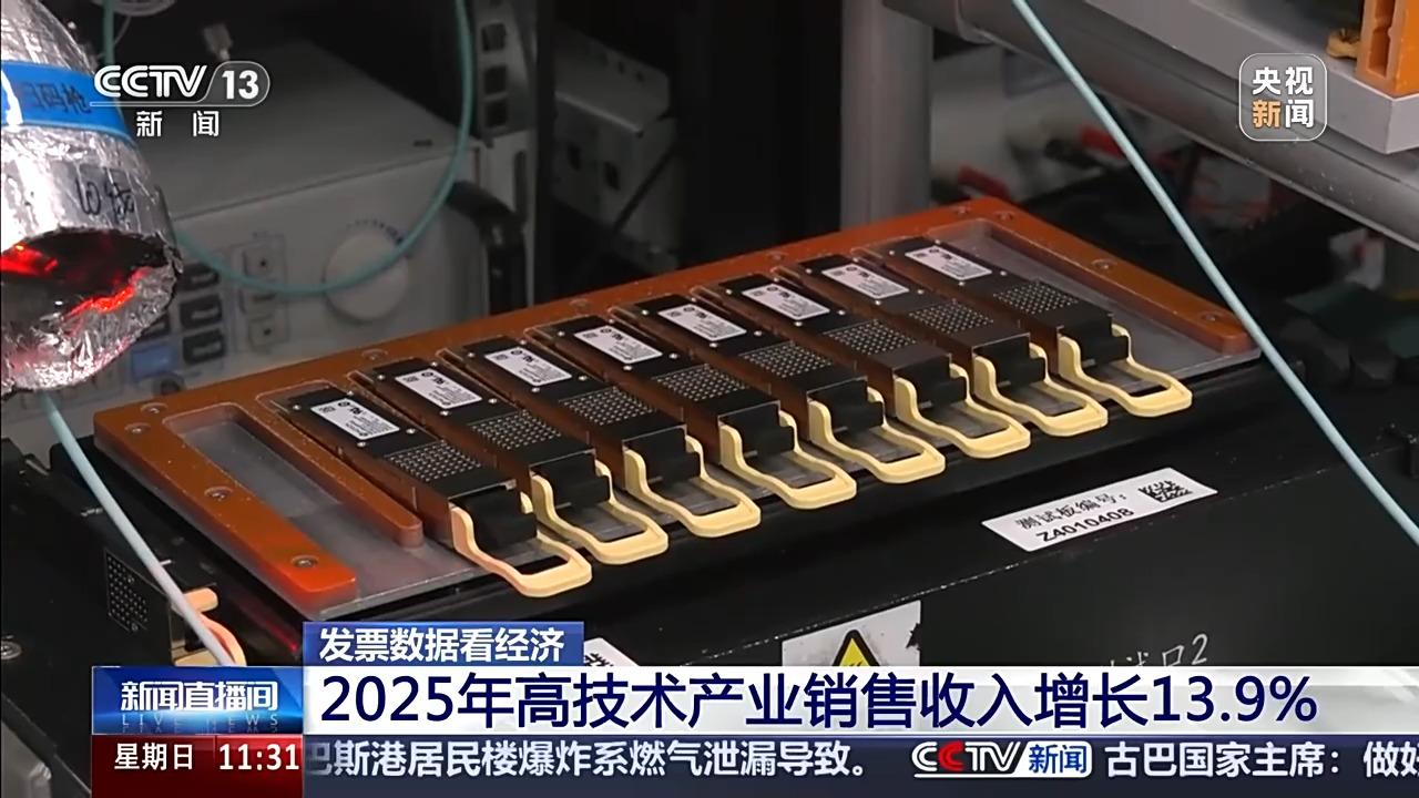 发票数据显示,2025年全国战略性新兴产业茁壮成长,高技术产业销售收入同比增长13.9%,其中高技术制造业、高技术服务业同比分别增长10.1%和16.6%。