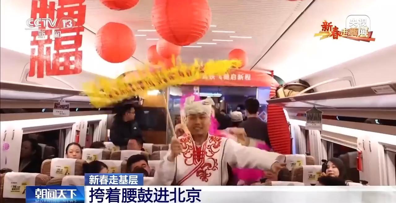 高塞东:这是我第一次坐火车去北京打腰鼓,那时候我们把腰鼓扛在肩上,怕磕磕碰碰,现在坐高铁又平稳又舒服。