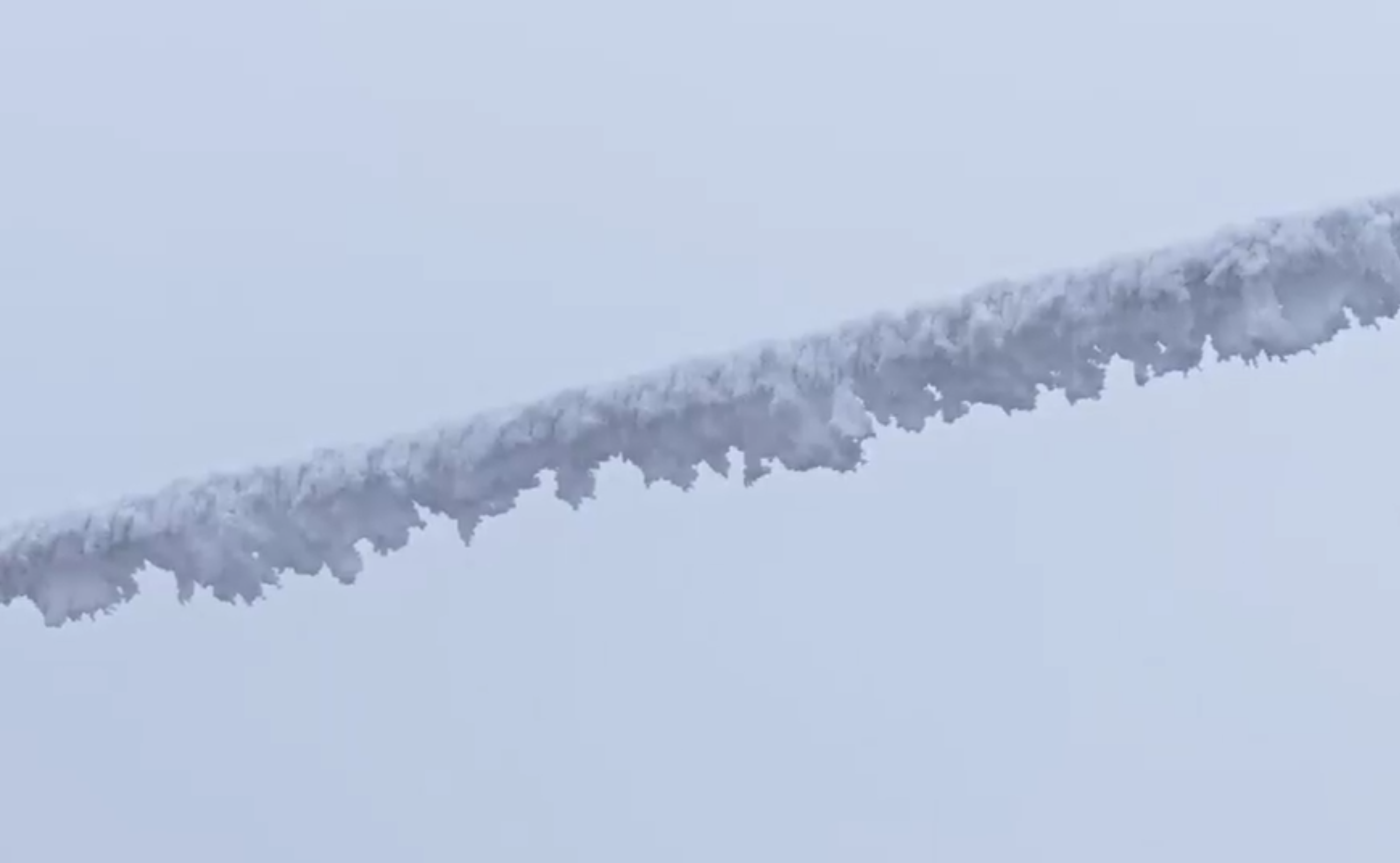 在持续融冰十几个小时后,施黎乙线覆冰情况显著减轻。裹在线路上的坚冰层层脱落,大块冰碴噼里啪啦地砸进山间草丛。据杨肄观察,此次融冰脱落的冰体最长近2米。