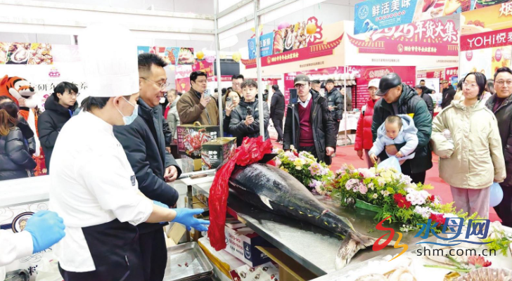 水母网2月5日讯(YMG全媒体记者 金海善 摄影报道)2月4日上午11时许,一声清脆的锣响在海洋大集年货节B馆内回荡,伴随着主持人嘹亮的“开鱼!”号令,一场别开生面的开鱼盛宴在山东泓尚水产有限公司展位拉开序幕。这场集视觉、味觉与文化体验于一体的活动,瞬间成为全场的焦点。
