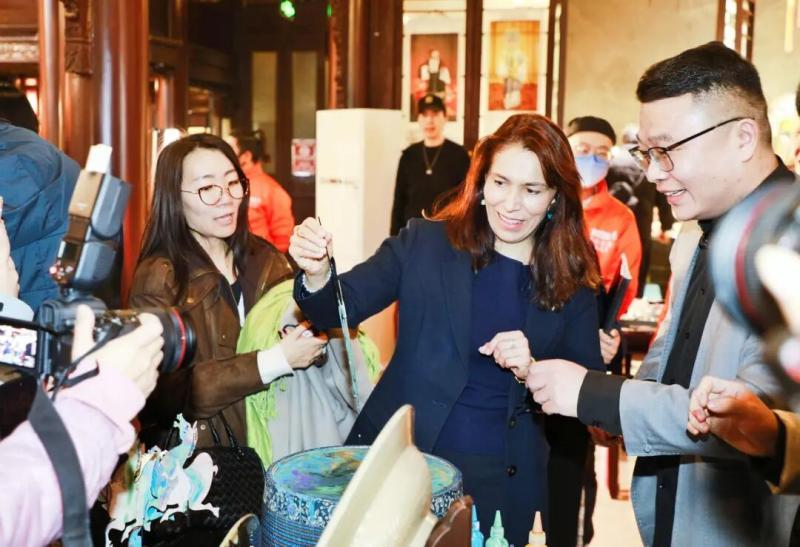 漫步广东会馆,驻华使节们沉浸于京剧文化的独特魅力。西青杨柳青古镇的新春灯会流光溢彩,意合堂会的中华传统武术刚劲有力,玉成号年画坊里,驻华使节们亲手体验年画拓印,在一抹抹喜庆红中,品味地道中国年、浓郁天津味。