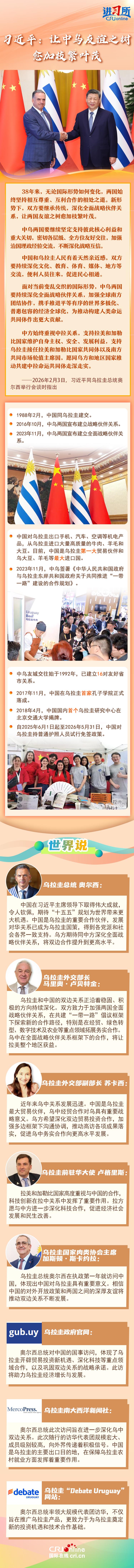 “相知无远近,万里尚为邻。”建交38年来,无论国际形势如何变化,两国始终坚持相互尊重、互利合作的相处之道。乌方媒体及各界人士认为,近年来乌中关系处于历史最好时期。中国是乌拉圭的重要合作伙伴,乌中在全面战略伙伴关系框架下的合作,将让拉美整个地区获益。