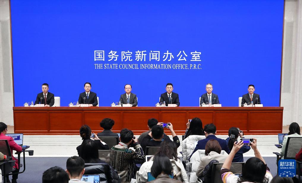 2月6日,国务院新闻办公室在北京举行国务院政策例行吹风会,商务部副部长鄢东、交通运输部综合规划司负责人刘东、商务部服务贸易和商贸服务业司司长孔德军、广电总局网络视听节目管理司司长王小亮、体育总局体育经济司负责人艾郁介绍《加快培育服务消费新增长点工作方案》有关情况,并答记者问。新华社发(赵一帆摄)