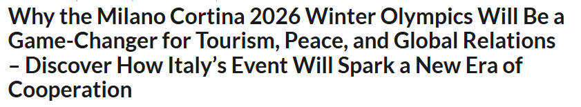 文章认为,2026年米兰-科尔蒂纳冬季奥运会举办的意义远不止于争夺金牌,还将有力推动全球旅游业复苏、促进和平理念传播,并通过体育运动将不同文化紧密连接。