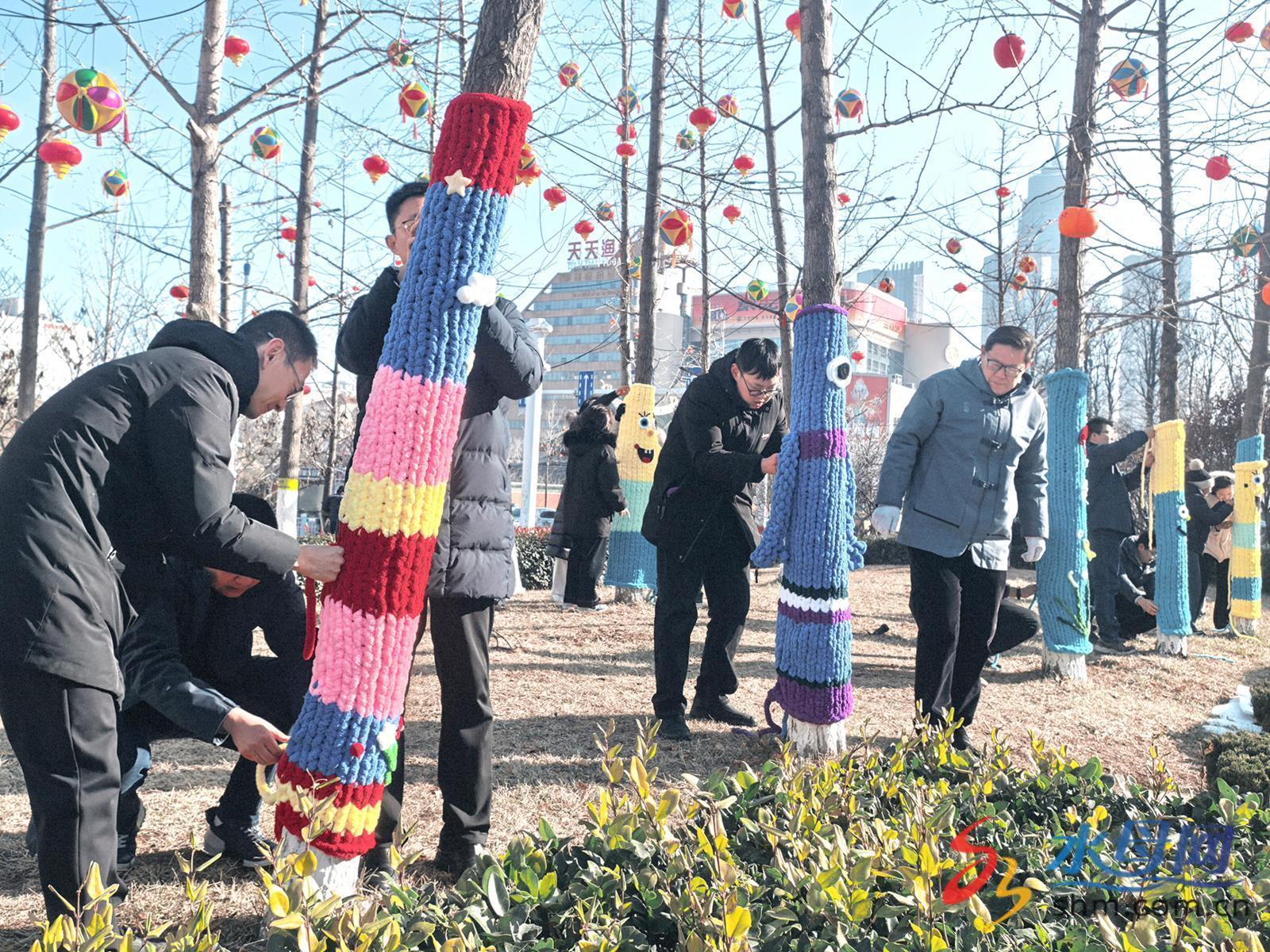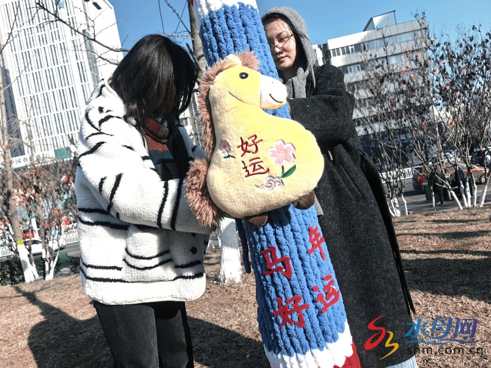 “冬天广场色彩单调,穿上‘彩衣’后,一下子活泼起来。能用双手为城市增添一份年味,我们觉得很值。”志愿者张春慧笑着说。