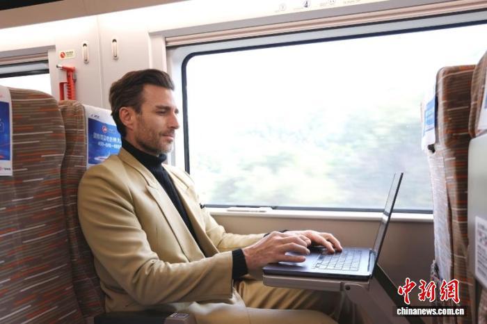 来自阿根廷的Raul正在开往深圳的高铁上办公。卓悦 摄