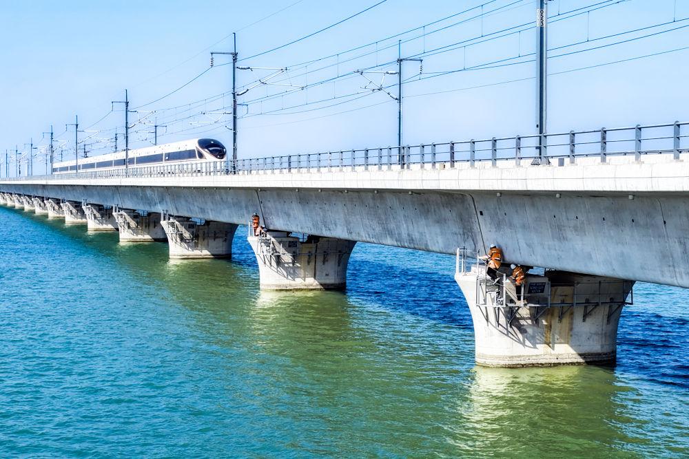 从踏上箱梁的那一刻起,他们就必须完成对212座高铁桥梁、桥墩的巡视,对8000多颗高强度螺栓进行敲击检查,为旅客和列车提供安全保障。
