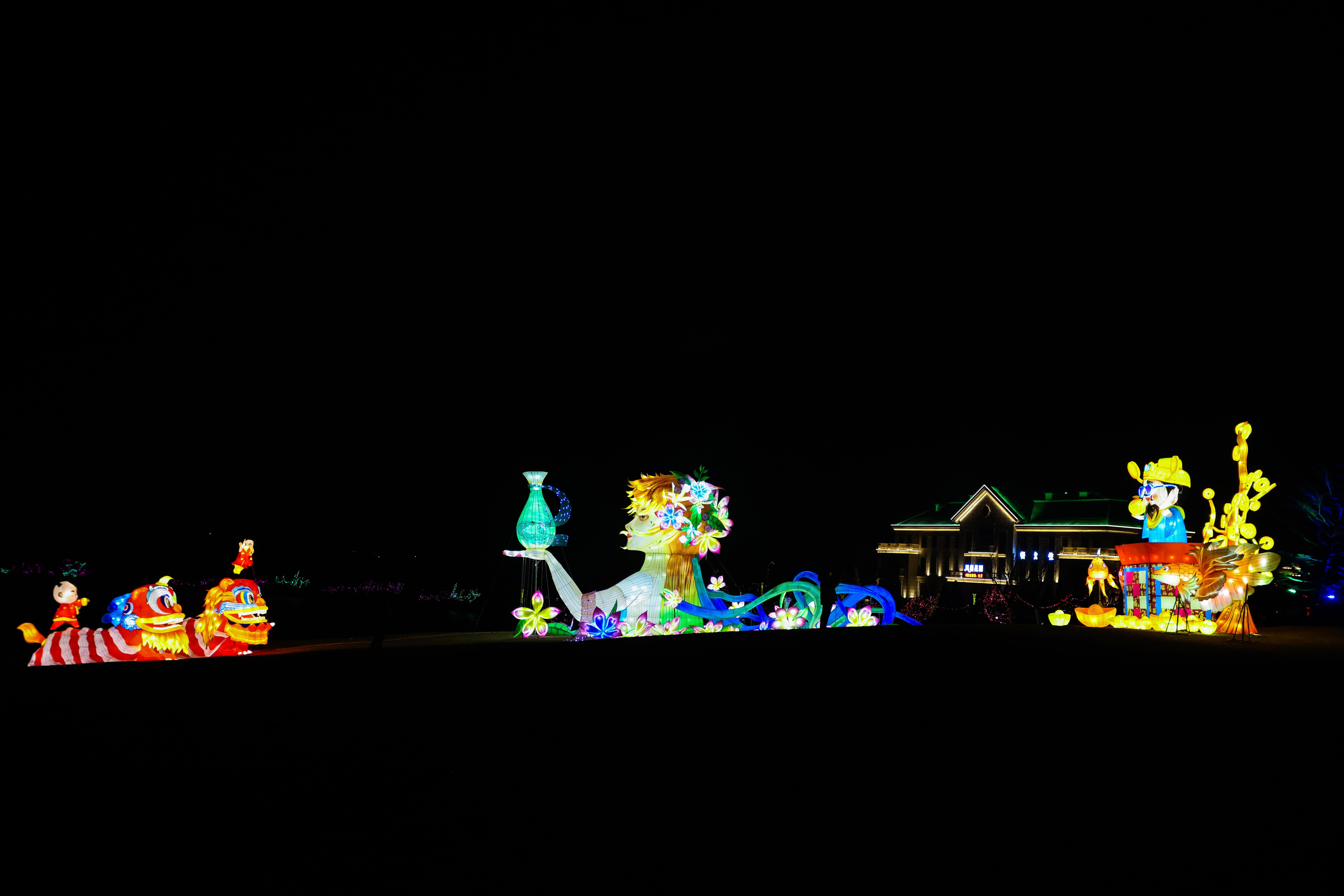 傍晚时分,喜庆的鼓乐声中,灯会大门华灯璀璨,这座宽26米、高12米的巨型大门,宛如热情的主人,张开怀抱迎接八方来客。踏入园区,仿佛进入了一个梦幻的光影世界。六大主题区域、53组大型花灯同时点亮,将园区装点得如诗如画,引得首批入园的游客们纷纷惊叹,迫不及待地用手机记录下这美轮美奂的瞬间。