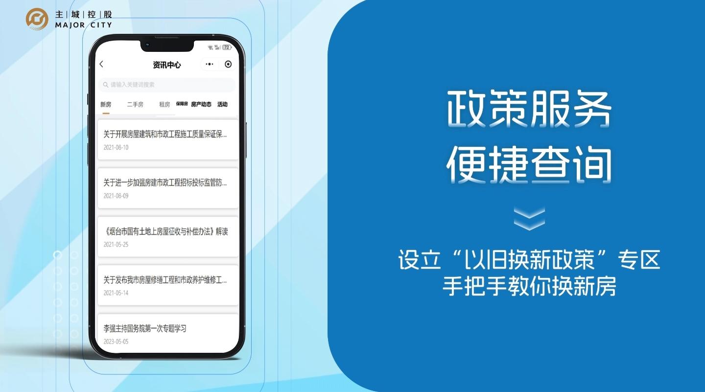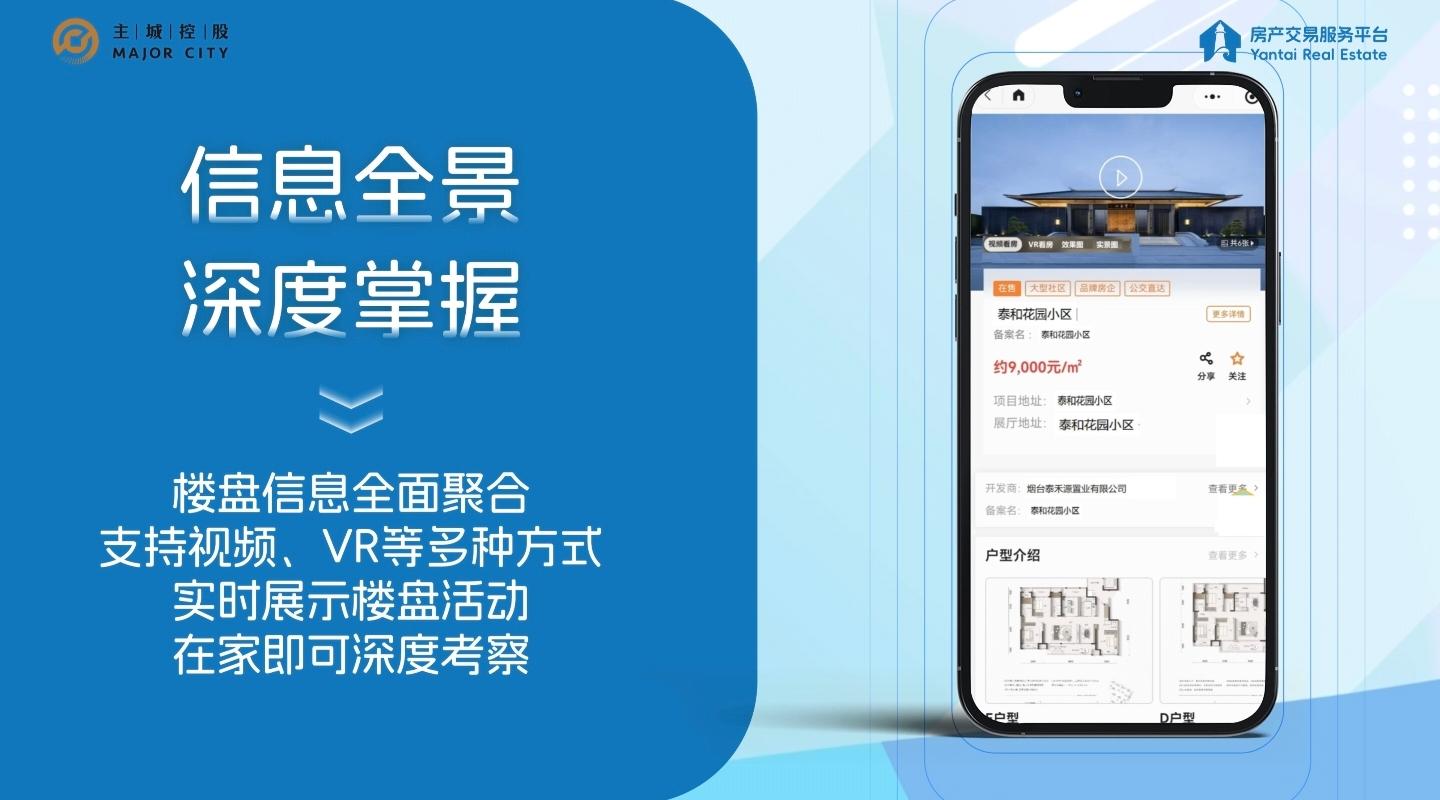 烟台主城控股集团有限公司是芝罘区委、区政府直接管理的国有独资企业,深度聚焦“城市更新、城市运营、产业投资”三大核心业务,“烟台主城房产交易服务平台”的建设运营,是烟台主城控股集团履行国企责任、服务城市发展的重要举措。平台将分三步有序推进:平台将分三步有序推进:一期打造全市统一的权威信息平台,实现各类房源线上展示与核验;二期重点建设线上交易闭环,涵盖选房、签约、支付等全流程;三期将围绕“居住+”拓展至城市生活服务与产业供应链,构建开放共赢的服务生态。平台将通过逐步升级,持续为市场提供规范、专业、高效的房产交易服务。